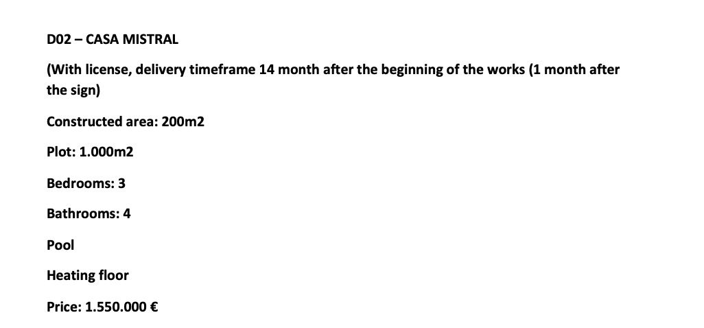 | Villa | 3 | 4 | 200 m² | 1000 m² | 1,550,000€ | More info... |