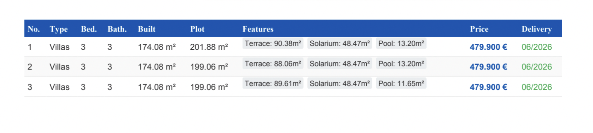 | Villa | 3 | 3 | 174 m² | 200 m² | 479,900€ | More info... |