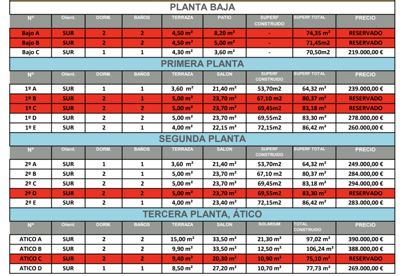 | Apartment with terrace | 2 | 1 | 68 m² | 4,3 + 3,6 m² | 260,000€ | More info... | |