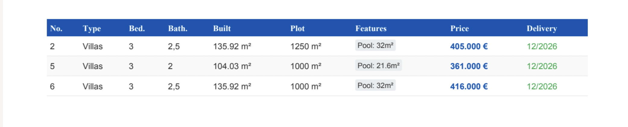 | Villa | 3 | 2 | 135,92 m² | 1000 m² | 405,000€ | More info... |
