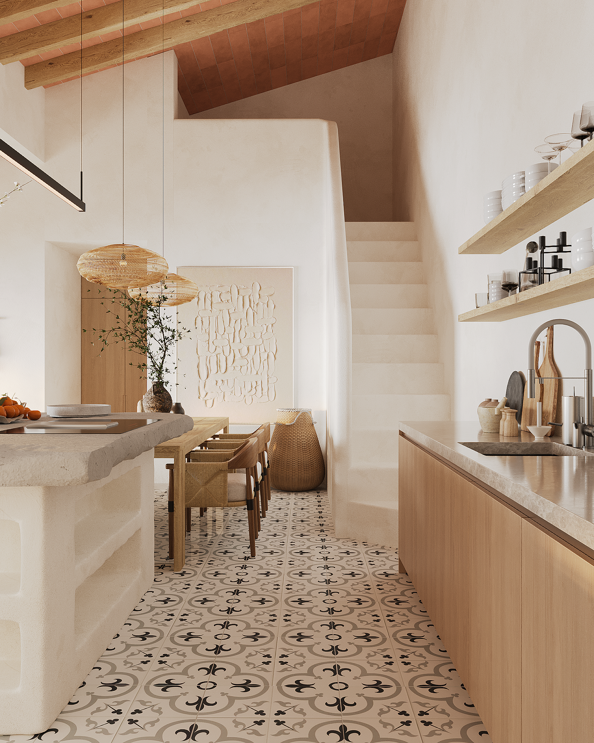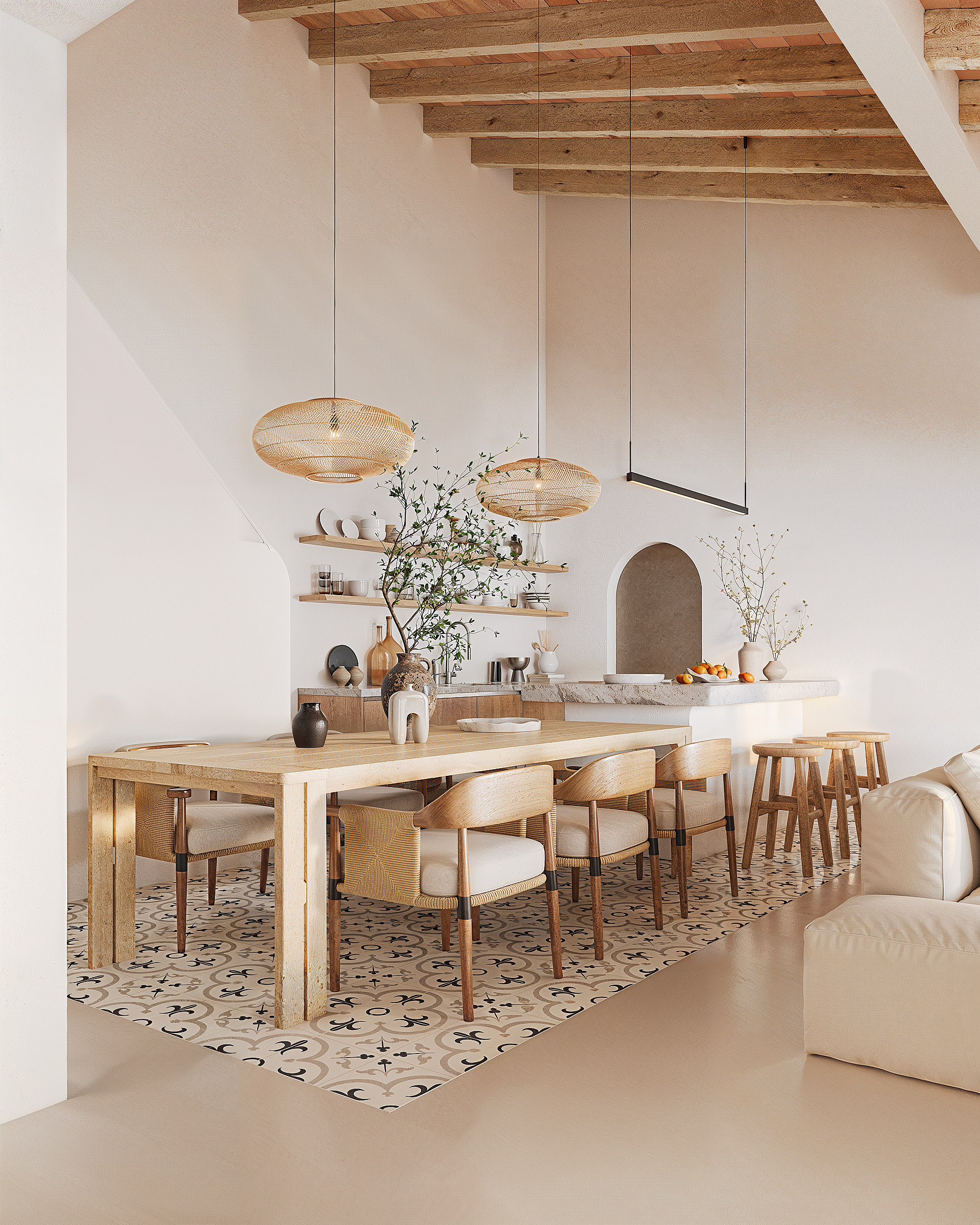 The renovation will have a rustic style. You'll soon find white sand paths, olive trees, Montgó stones, solid wood gates, a pergola, and many other details.