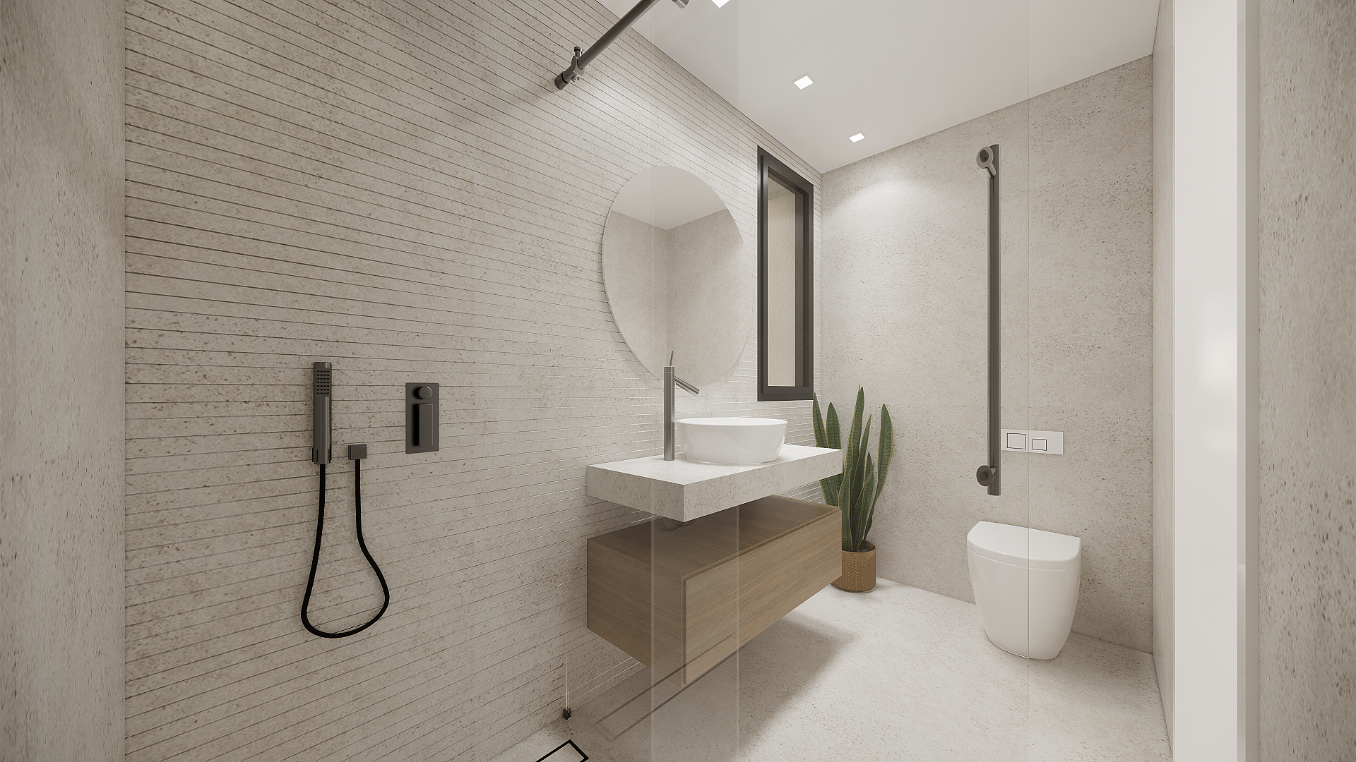 The villas are equipped with electric shutters, fully equipped bathrooms, and a fully equipped kitchen. Furthermore, the homes are equipped for air conditioning and have a motorized gate to the parking area.