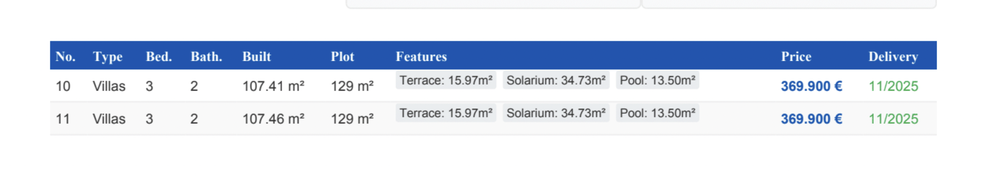 | Villa | 3 | 2 | 107 m² | 35 m² | 129 m² | 369,900€ | More info... |
