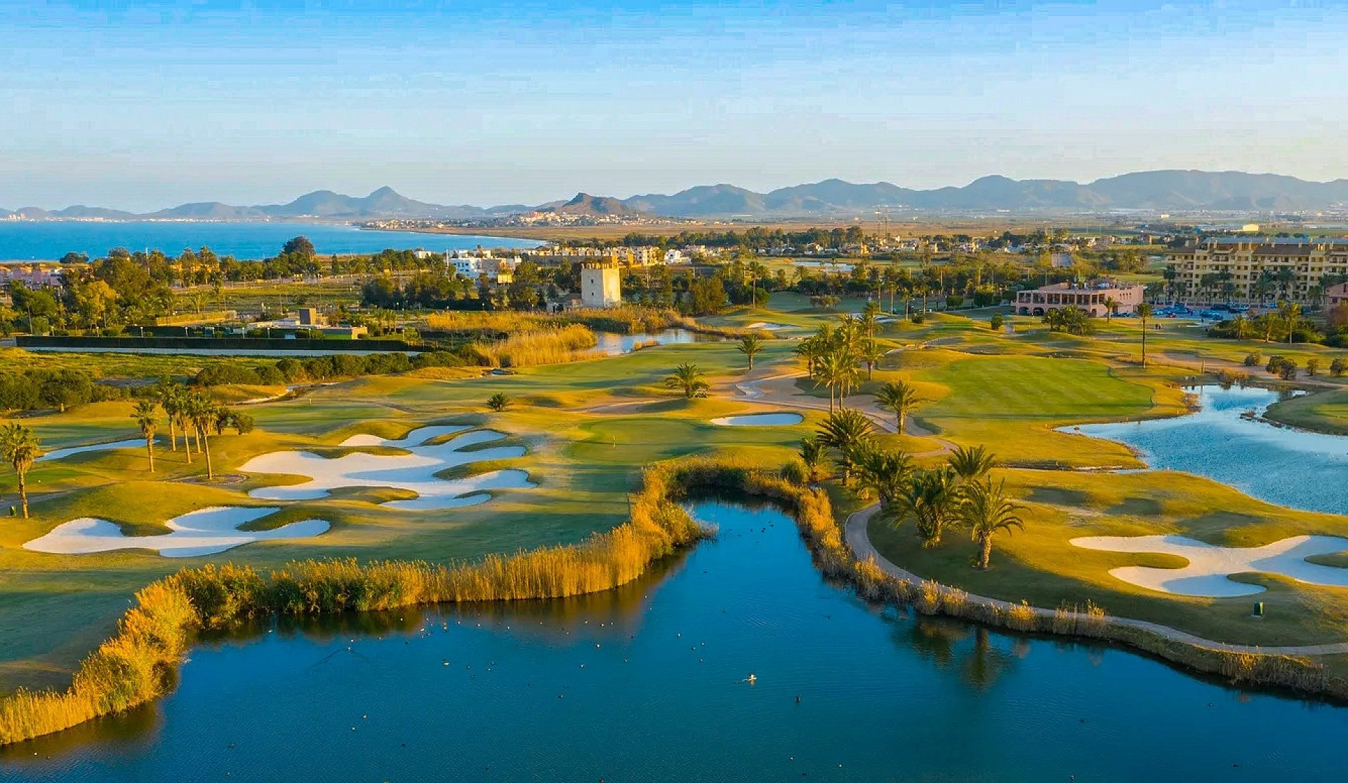 La Serena Golf, in Los Alcázares, is located on the edge of the Mar Menor, known for its tranquil waters and the best climate in Europe. Enjoy an 18-hole golf course, a driving range, and a clubhouse with sea views.