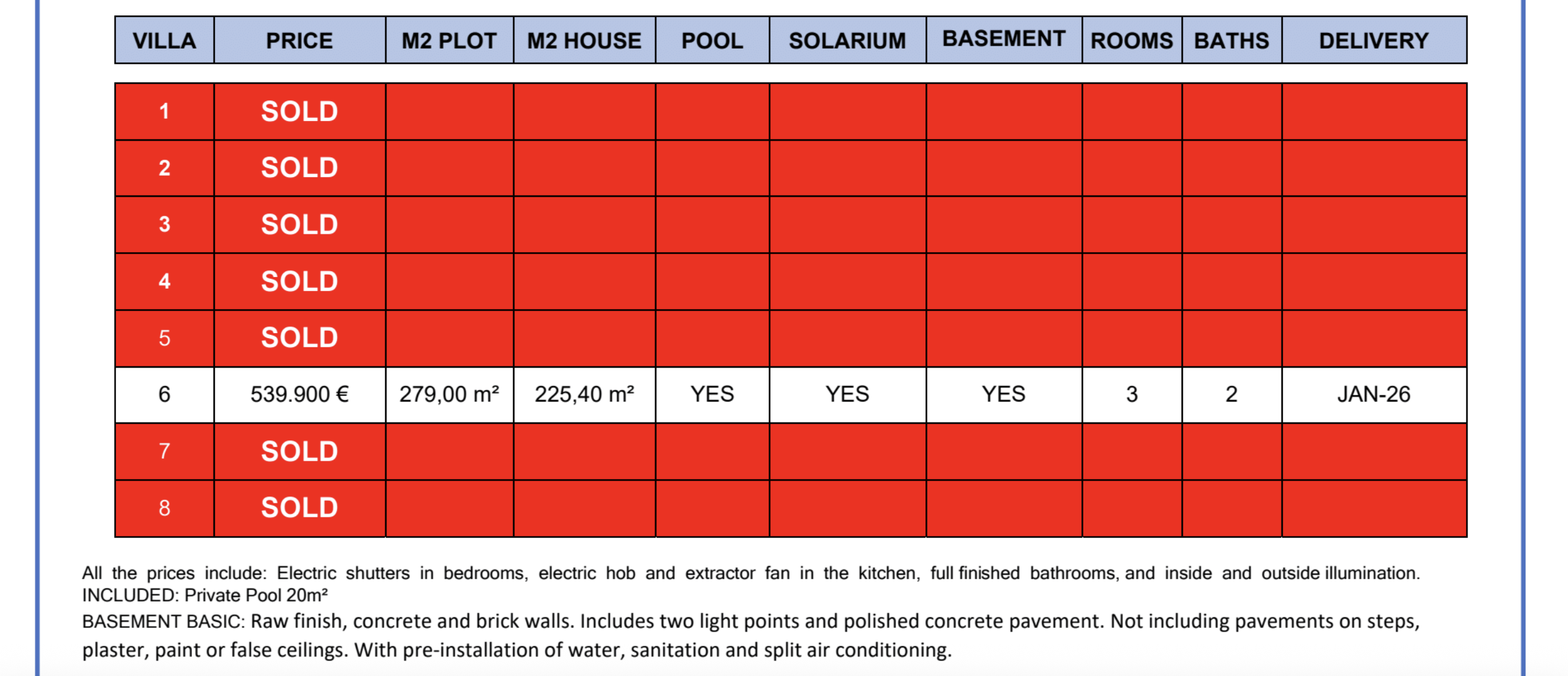 Furthermore, all villas have fully finished bathrooms, electric shutters, indoor and outdoor lighting and fitted wardrobes.
