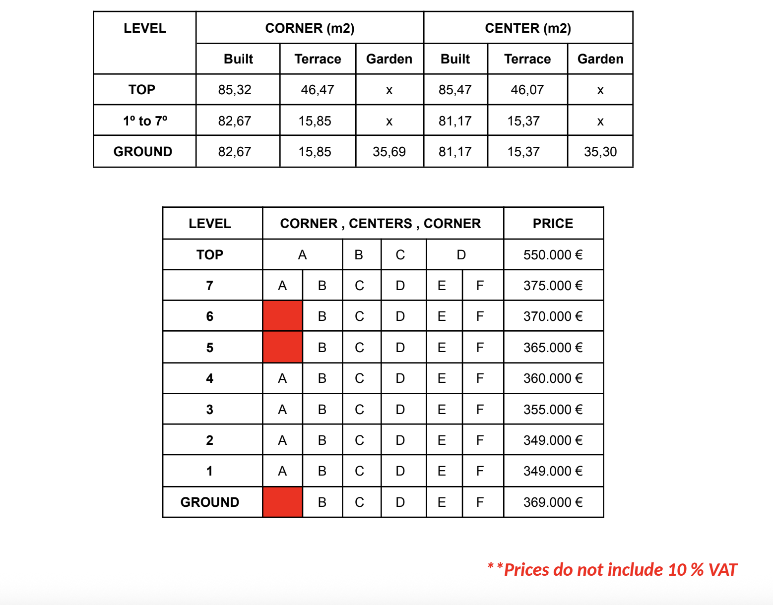 | Apartment with garden | 2 | 2 | 81,17 m² | 15,37 m² | 35 m² | 369,000€ | More info... |