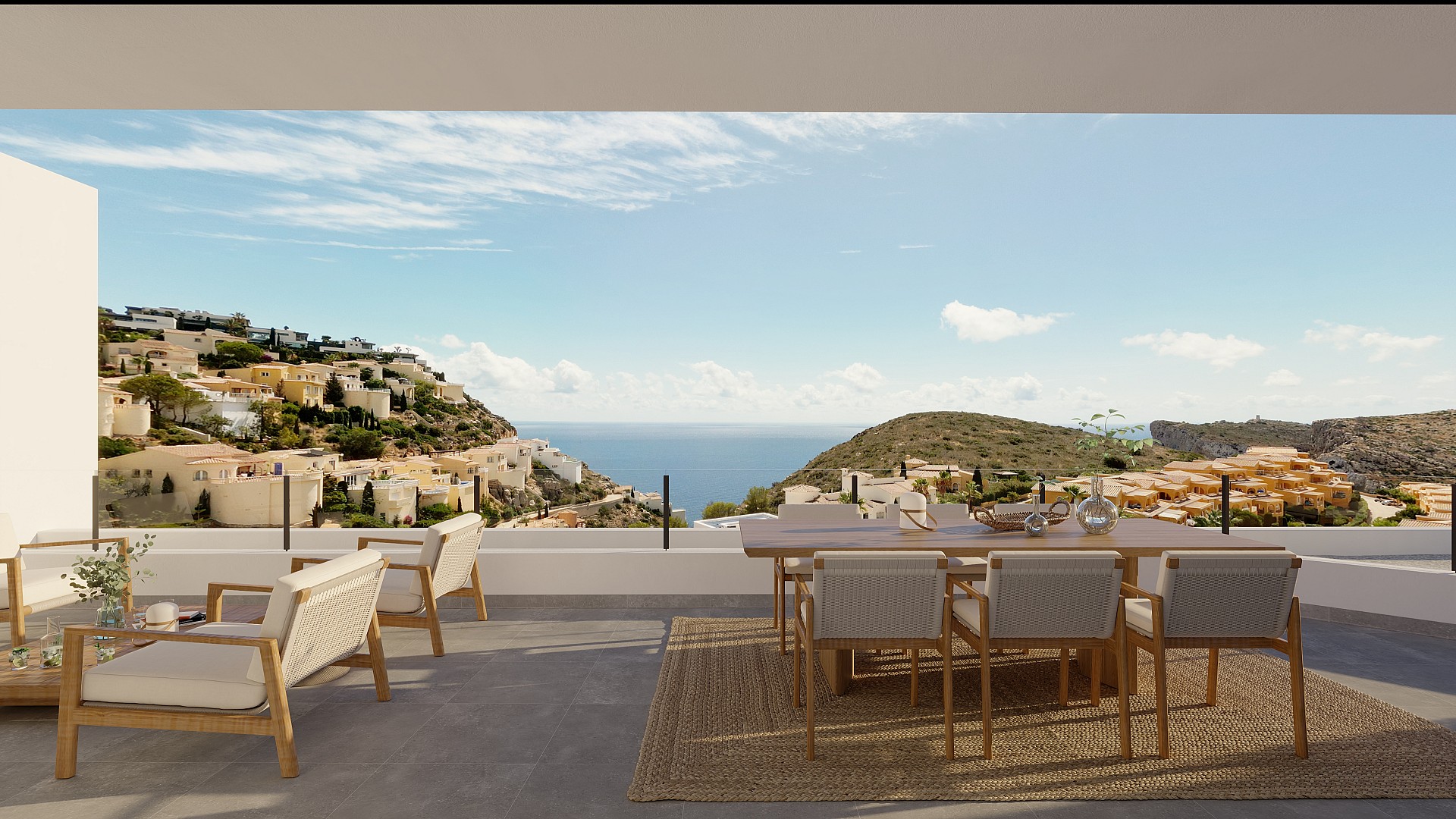 Montecala Gardens - Apartment with terrace provided with 3 Bedrooms and 2 Bathrooms, communal swimming pool and private parking space within domain, located in Benitachell - Cumbre del Sol at the Costa Blanca North in Spain.