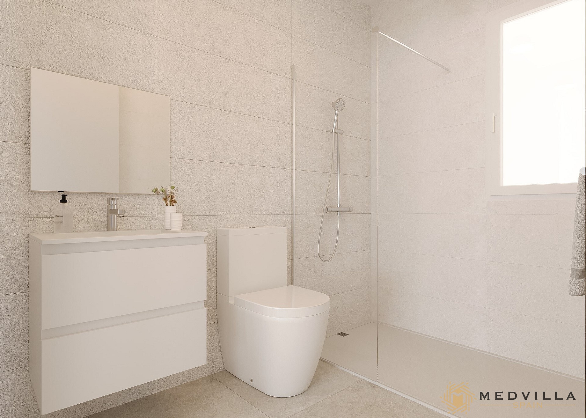 The price includes the following extras as standard: finished kitchen, finished bathroom(s), electric shutters, all kitchen appliances, built-in wardrobes, etc…