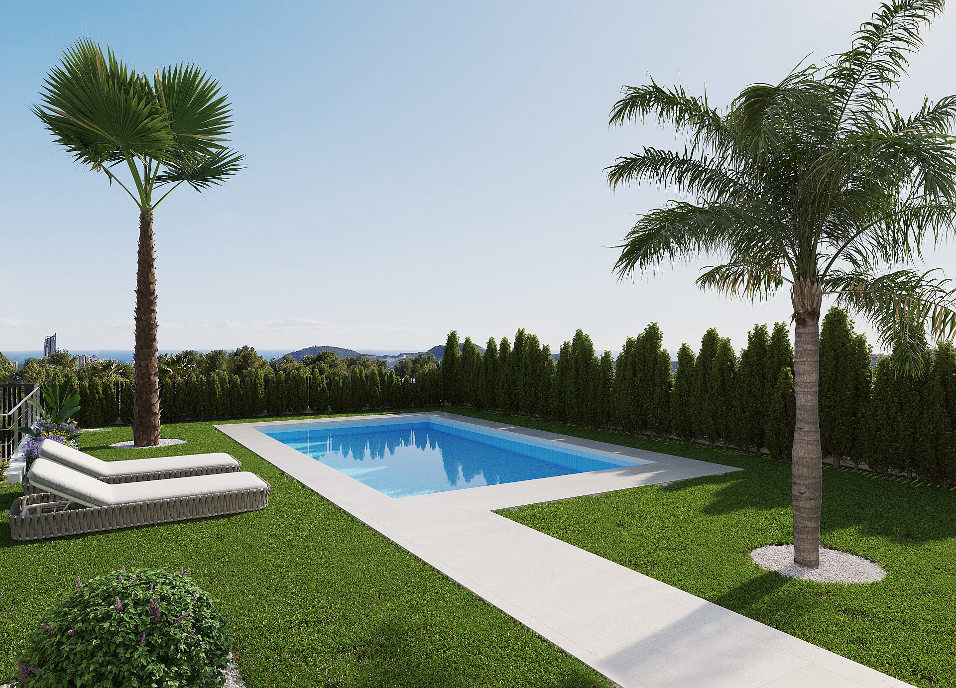 Seaview 6 - Villa provided with 3 Bedrooms and 3 Bathrooms, communal swimming pool and private parking space within domain, located in Finestrat at the Costa Blanca North in Spain.