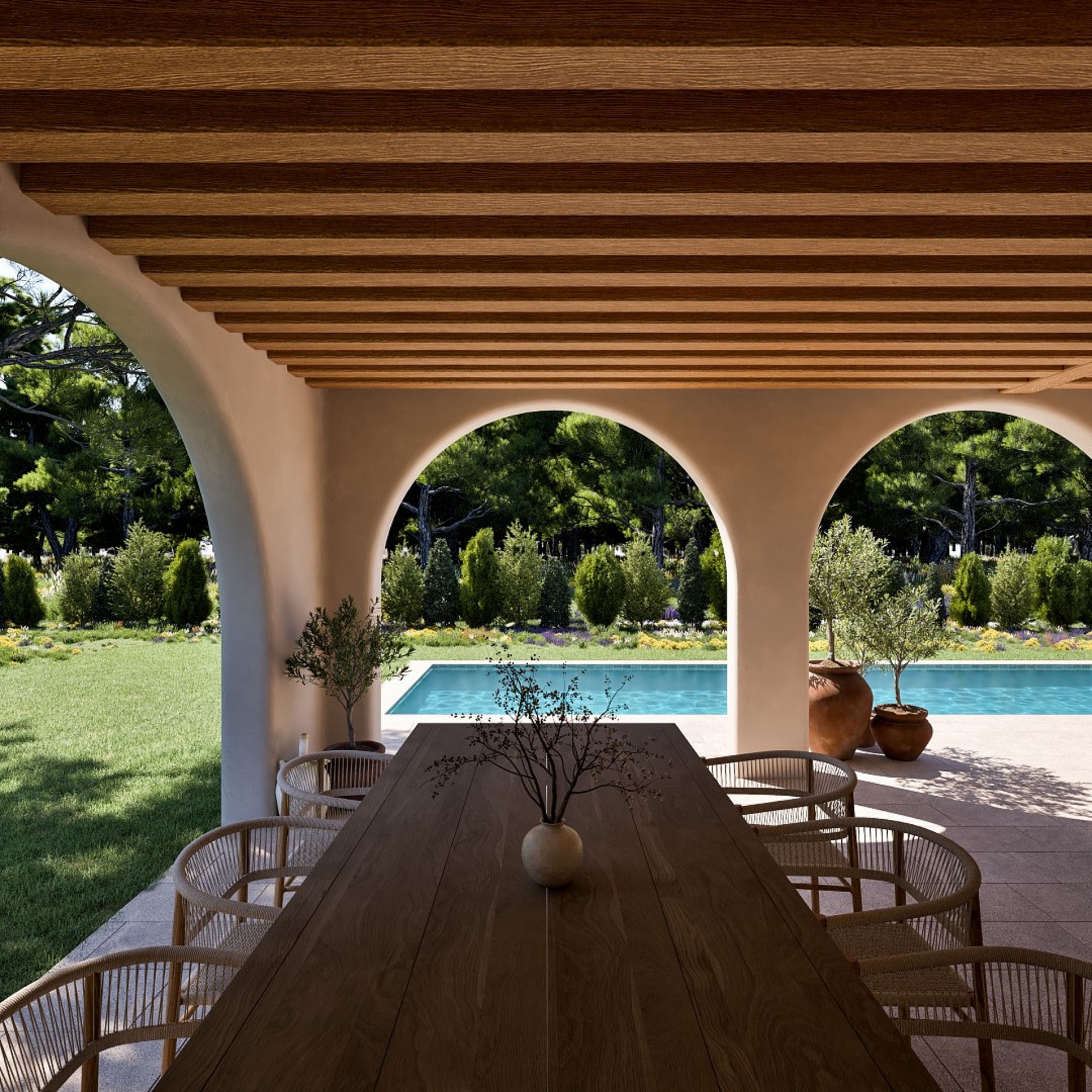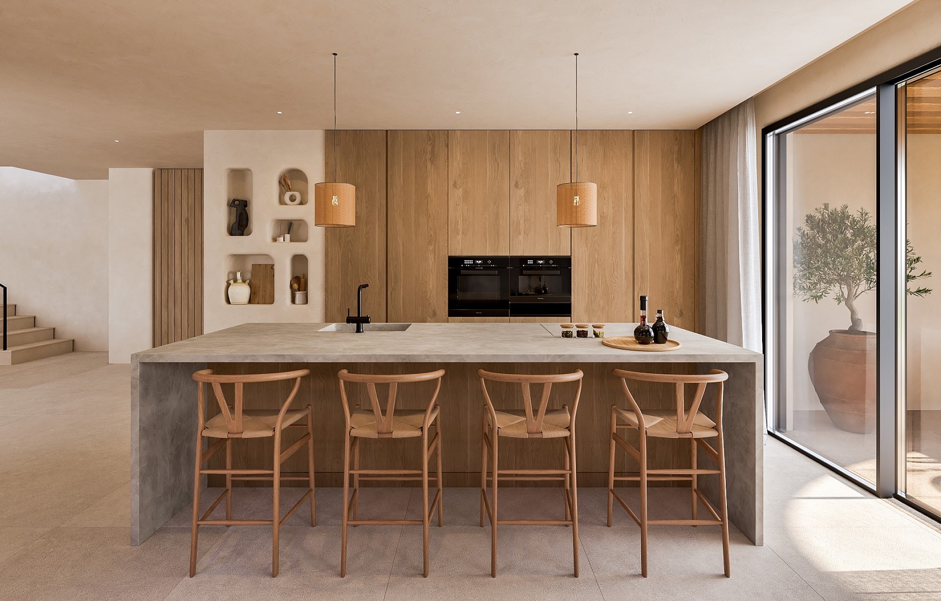 These unique homes combine contemporary architecture with Mediterranean warmth: spacious terraces, private swimming pools, stone details, wooden pergolas, arches in the nayas, and lush gardens create an atmosphere of refined serenity. Inside, open and bright spaces blend naturally with outdoor living, where the sea breeze and sunsets become part of everyday life.
