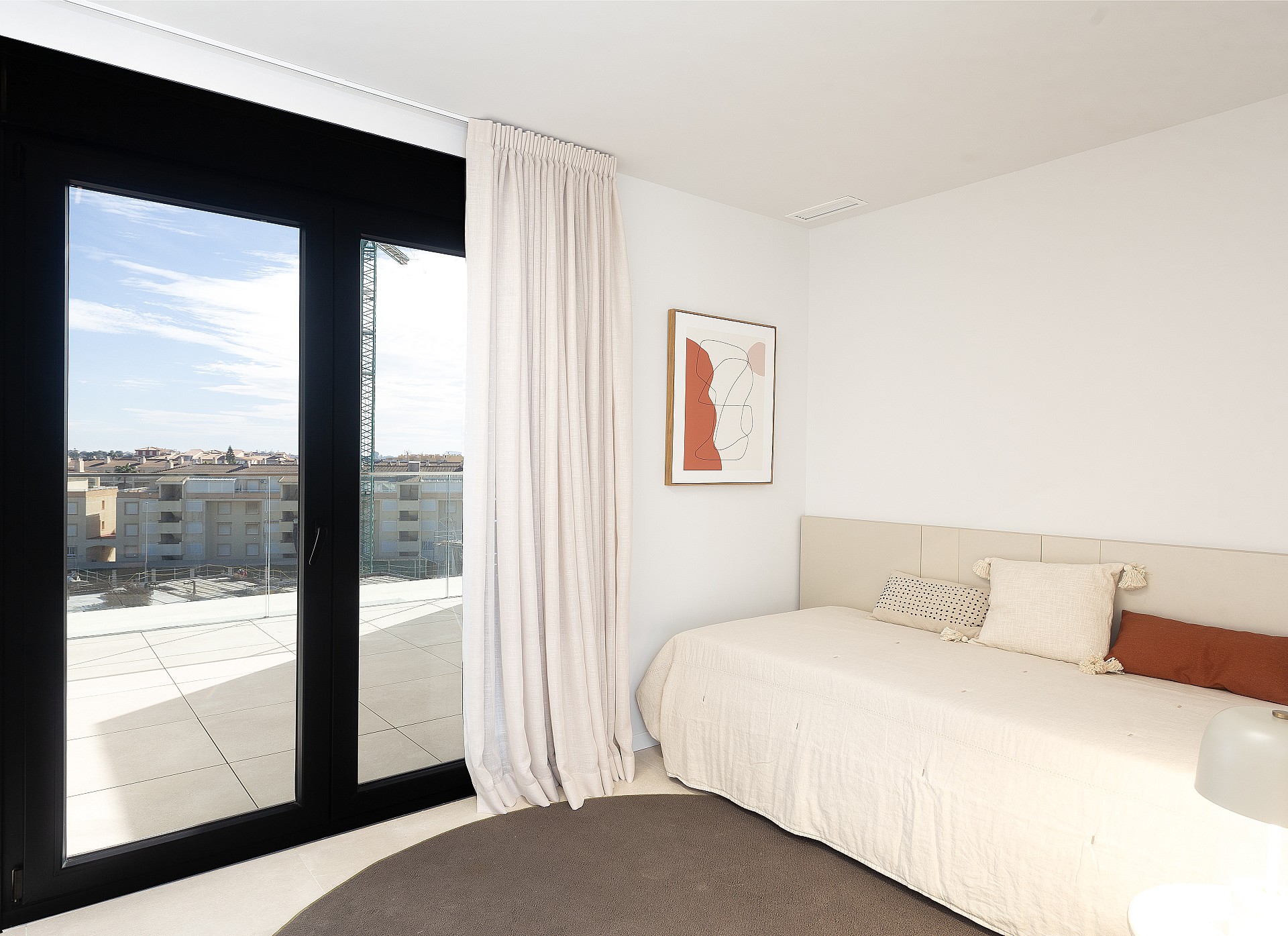 This exclusive Mediterranean residential complex is located directly on the beach of L'Estanyo, just 7 km from the city centre. It offers luxury apartments with magnificent sea views. Residents can enjoy spacious communal gardens, two swimming pools (including a children's pool) and a relaxing, maritime atmosphere. The area is known for its calm waters, golden sand and proximity to various amenities, leisure activities and restaurants.