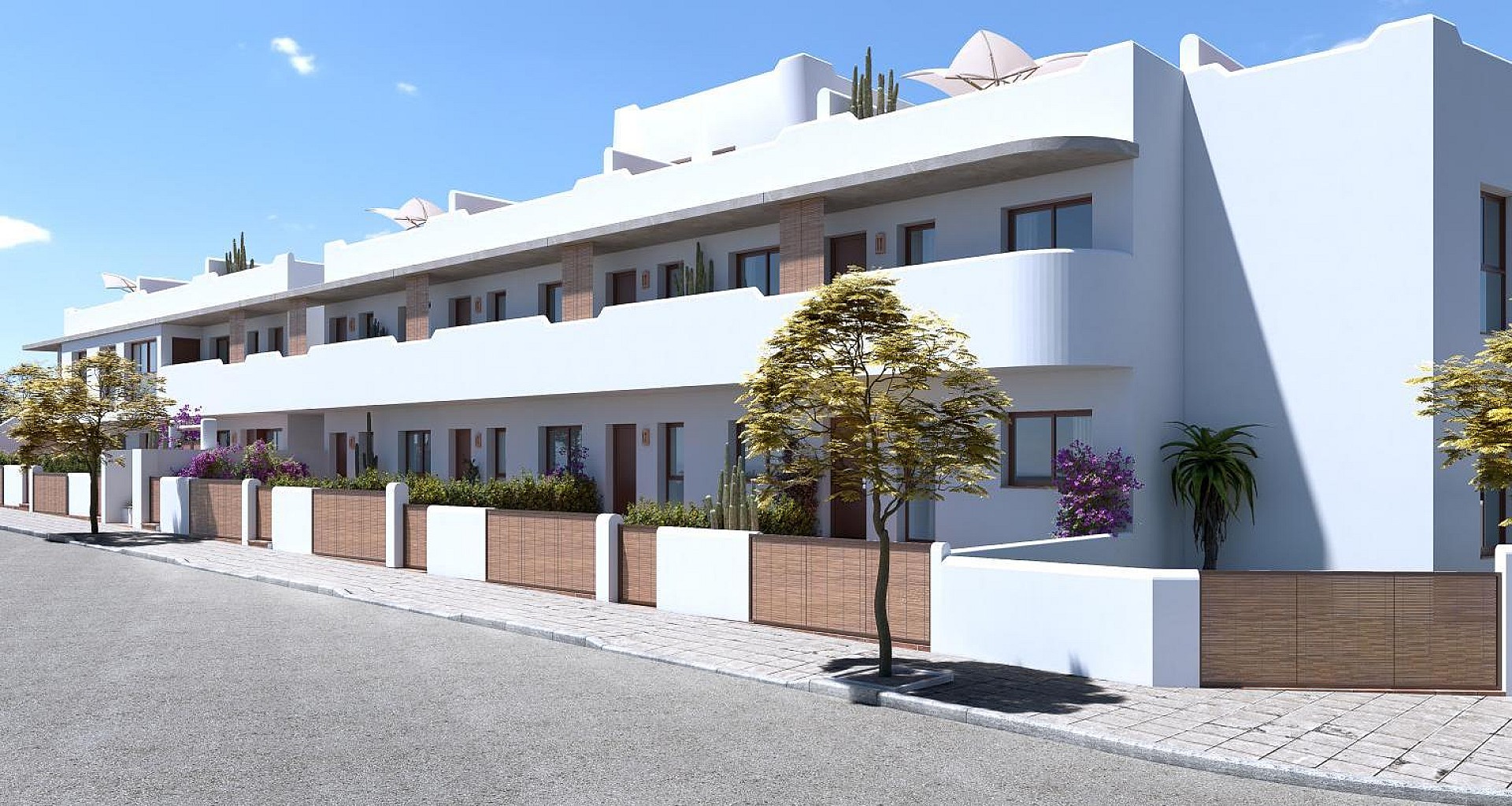 Small-scale complex with 16 bungalows and a corner duplex. The communal area offers a swimming pool and green areas, perfectly oriented to the southeast for maximum hours of sunshine.