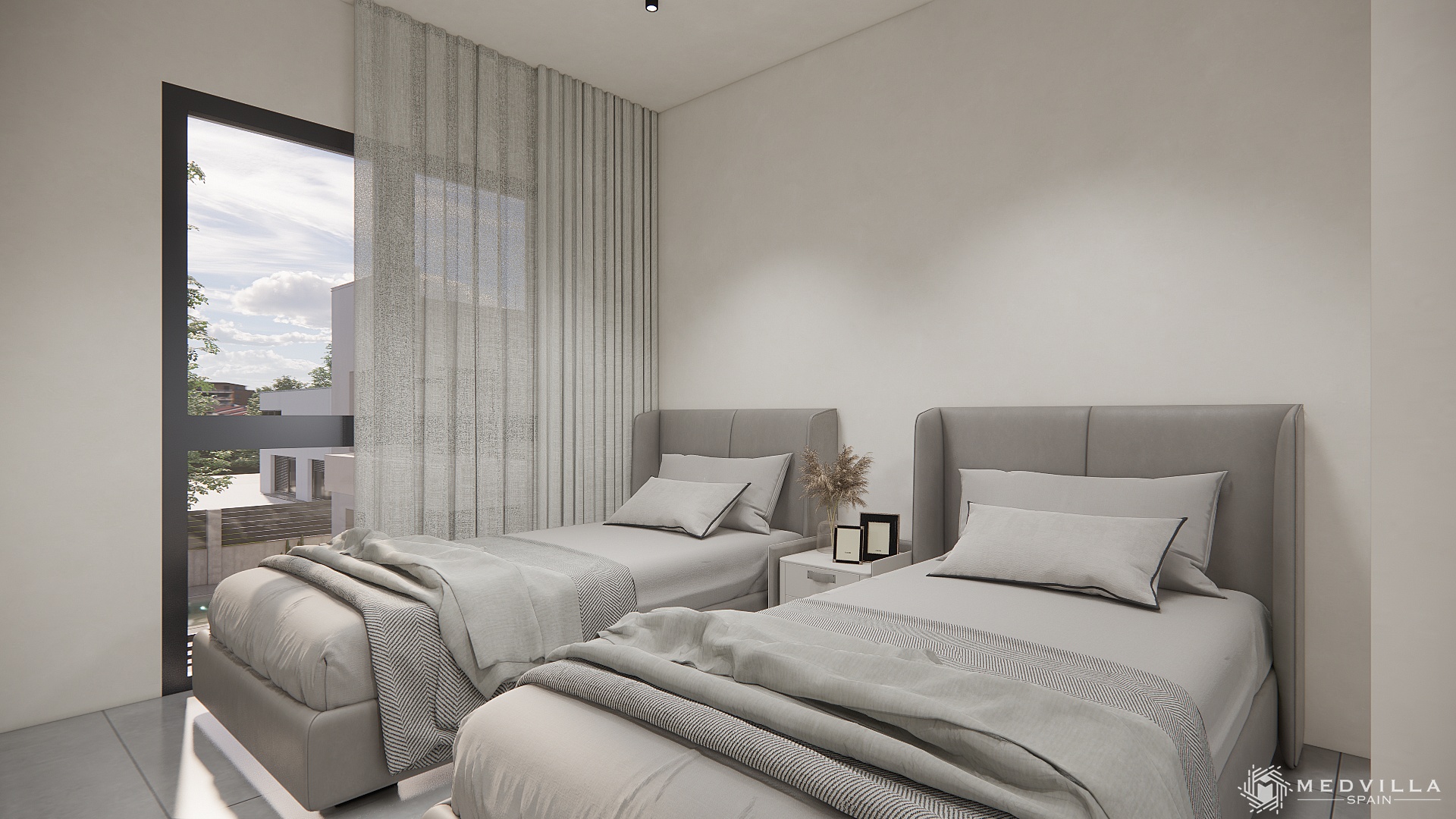 The price includes the following extras as standard: pre-air conditioning, finished bathroom(s), electric shutters in bedrooms, pre-installation of solar panels, etc…