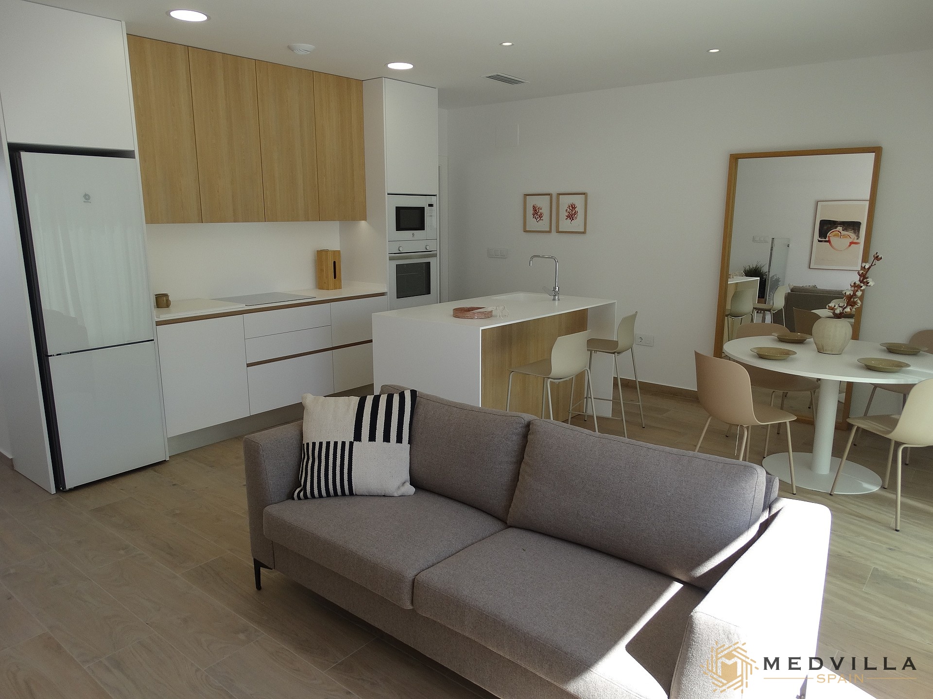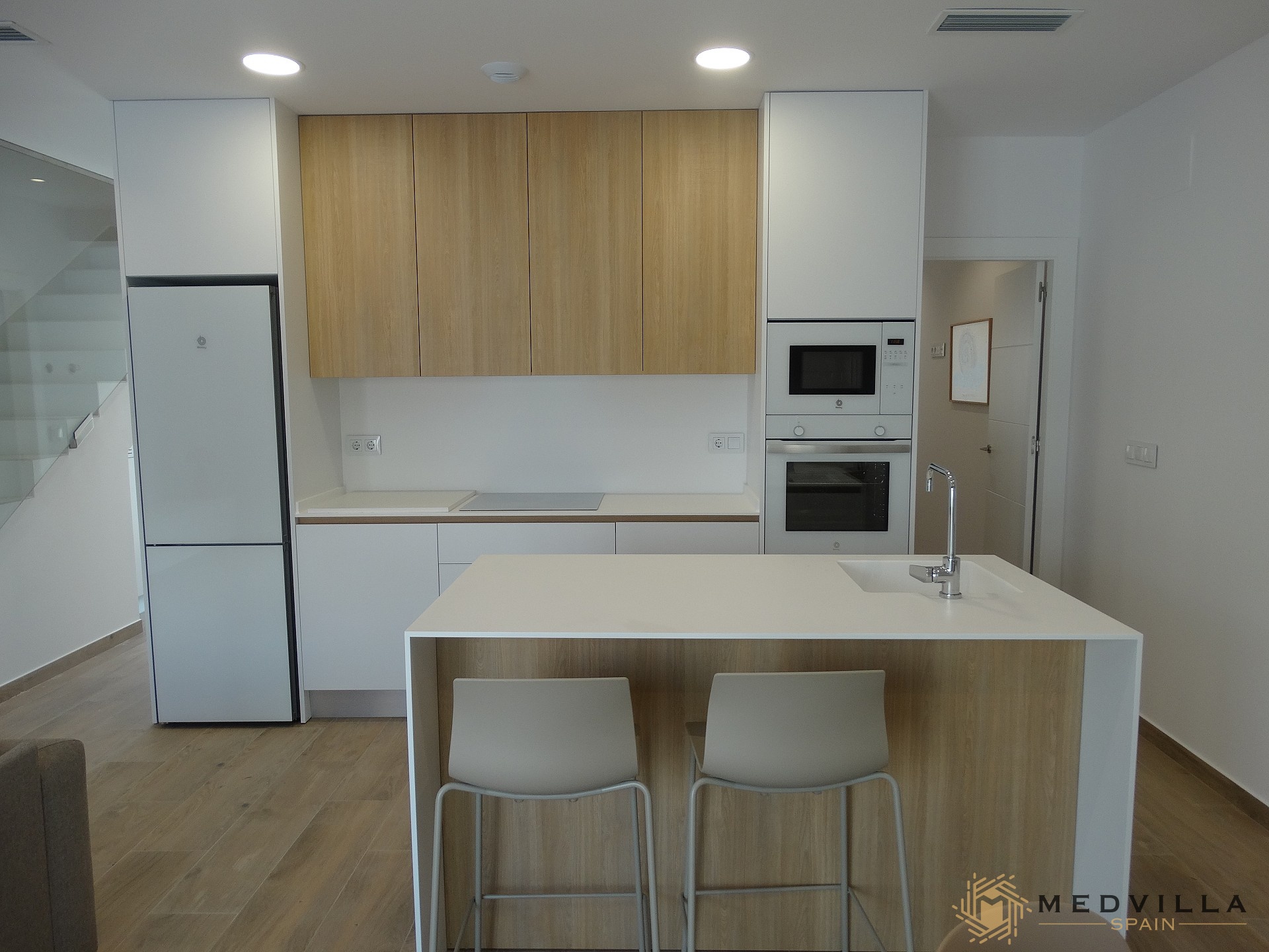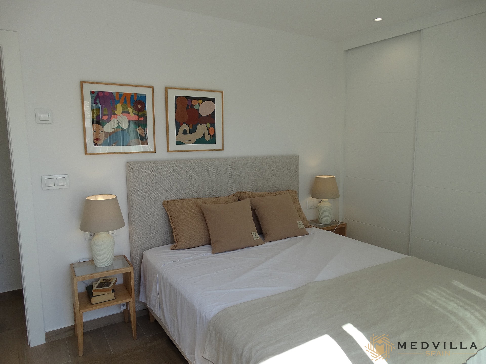 The price includes the following extras as standard: aerothermal heat pump, built-in wardrobes, pre-air conditioning, etc…