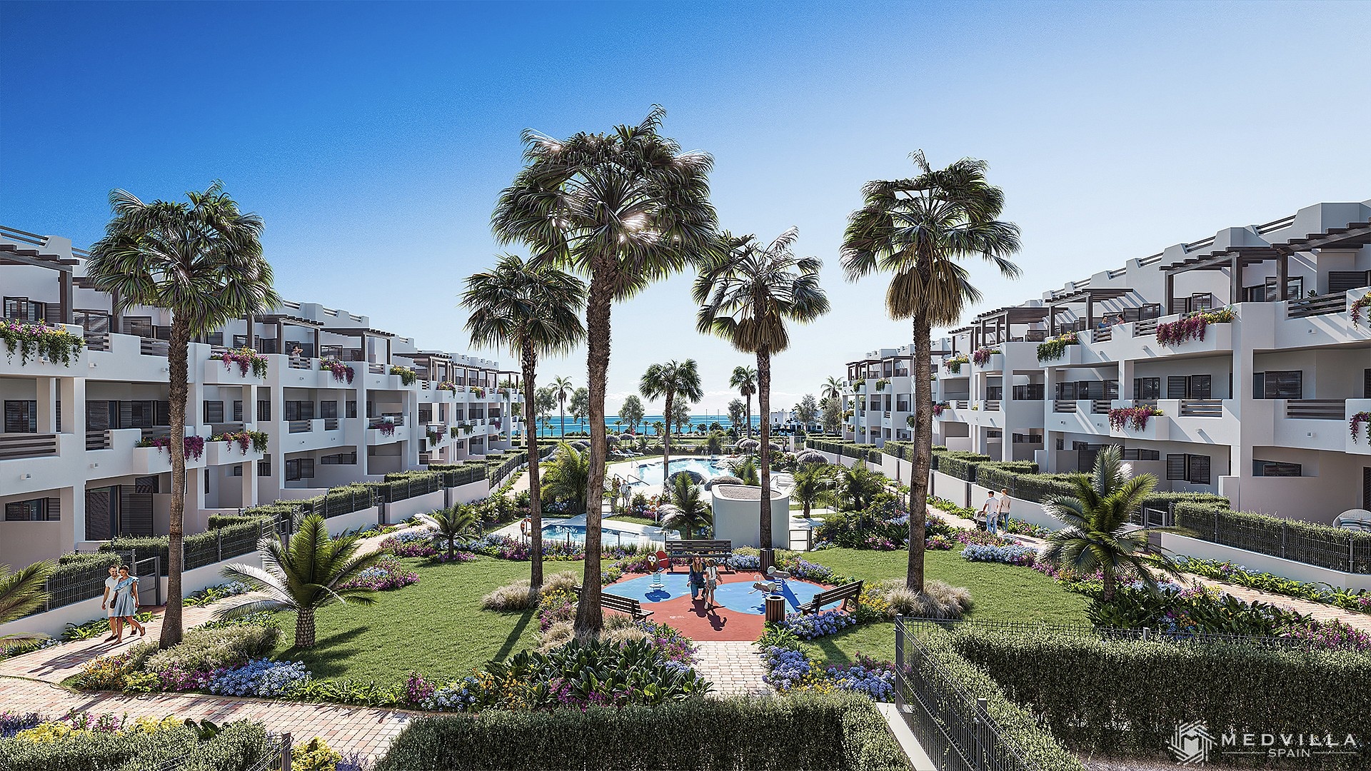 Mar de Pulpi fase 9 - Apartment with terrace provided with 2 Bedrooms and 2 Bathrooms, communal swimming pool and underground parking space, located in Mar de Pulpi at the Costa de Almería in Spain.